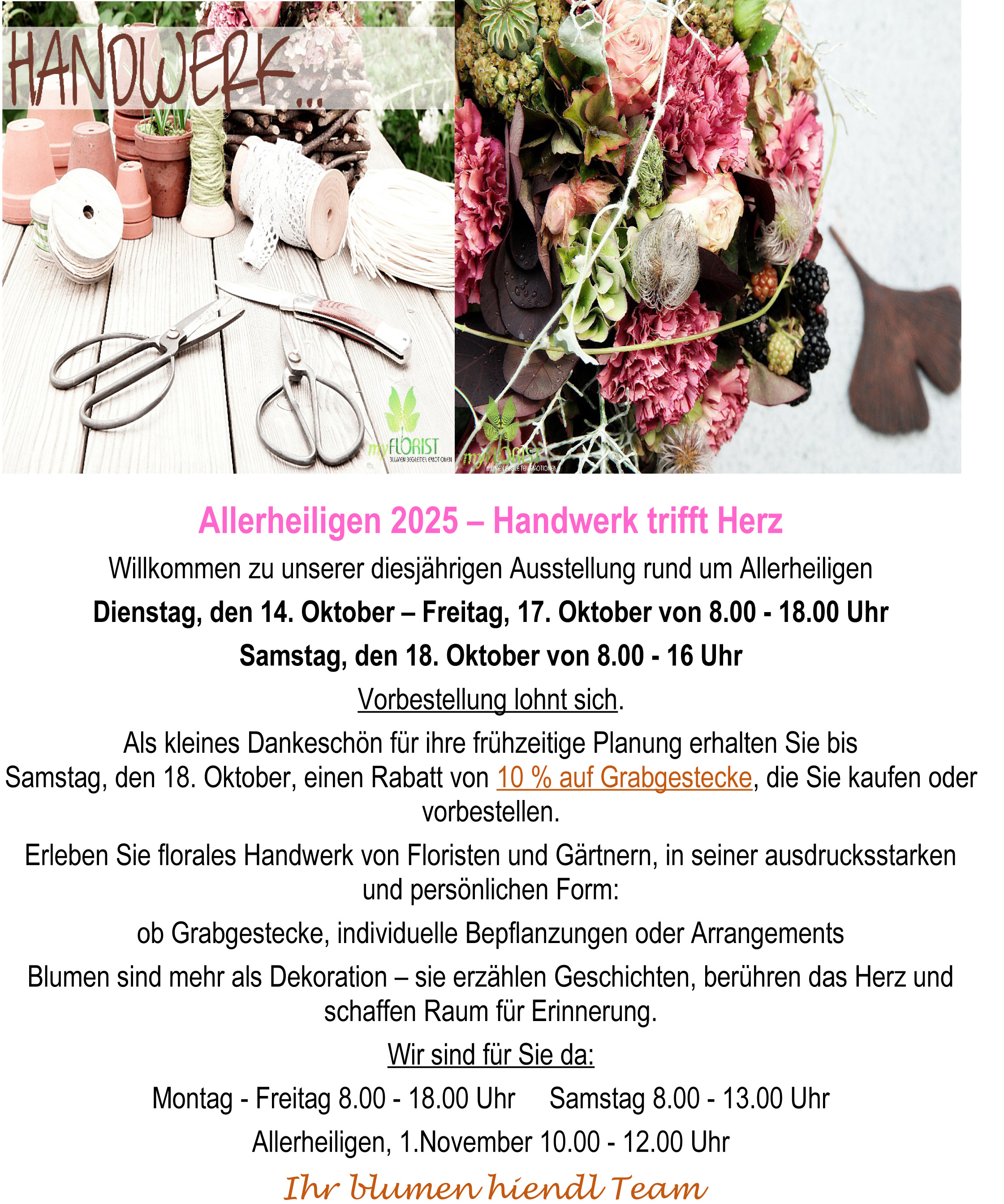 Dann bewirb dich jetzt und werde Teil unseres Teams! Wir freuen uns auf dich! Gerne unter info@blumen-hiendl.de oder rufe uns unter 09961/200 an