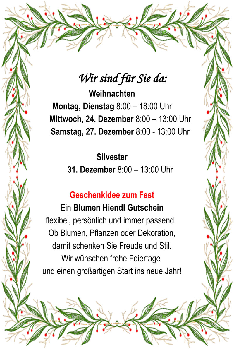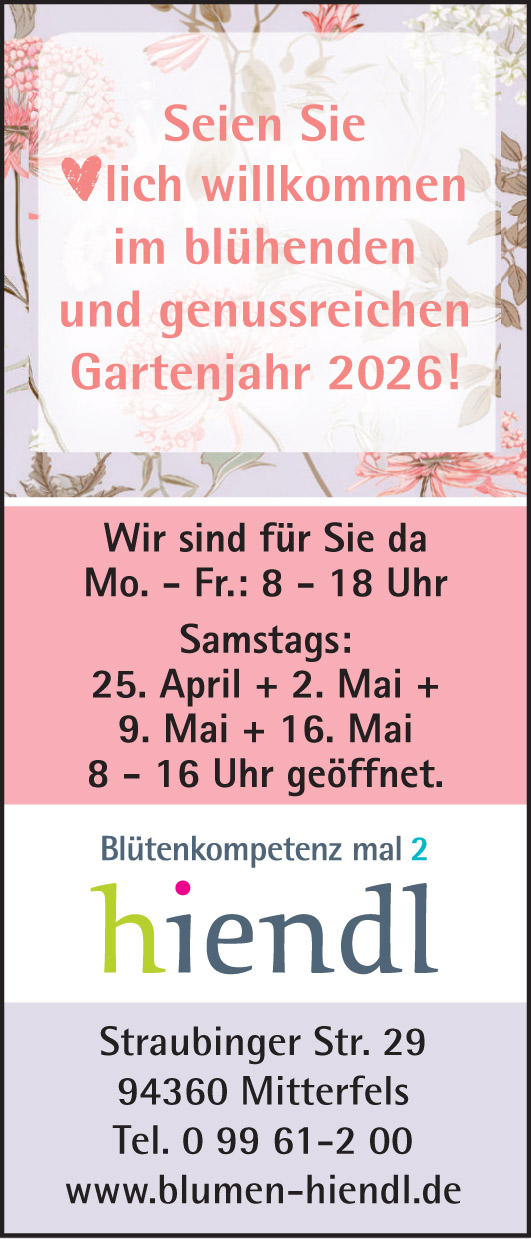 Dann bewirb dich jetzt und werde Teil unseres Teams! Wir freuen uns auf dich! Gerne unter info@blumen-hiendl.de oder rufe uns unter 09961/200 an
